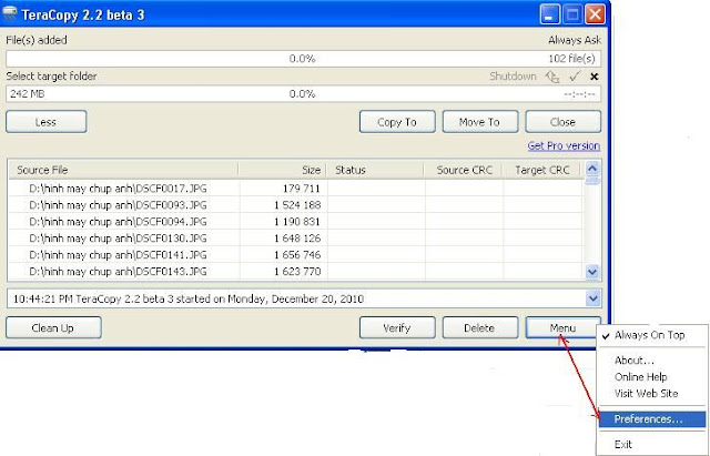 - File list: TeraCopy sẽ tạo một list trong quá trình copy để quan sát và điểu khiển việc copy dể dàng hơn.